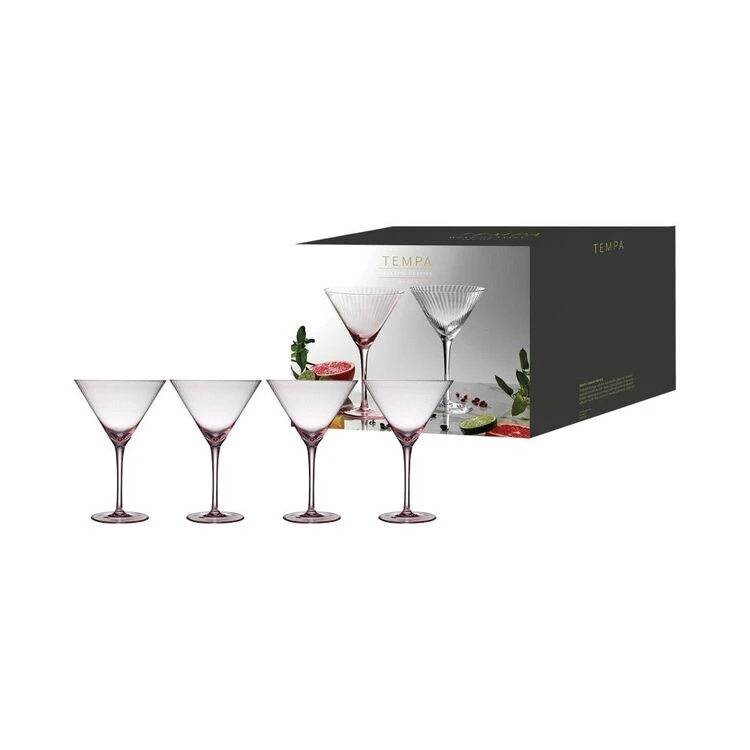 The Tempa Esme 4 Pack Martini Glass is subtle and sophisticated, guaranteed to make a statement with its stunning structured ribbed detailing. Made from high-quality, lead free crystal and available in both clear and blush, these glasses are perfect for entertaining. Mix and match with our wide range of glassware and dinnerware to build your own personalised table setting!
